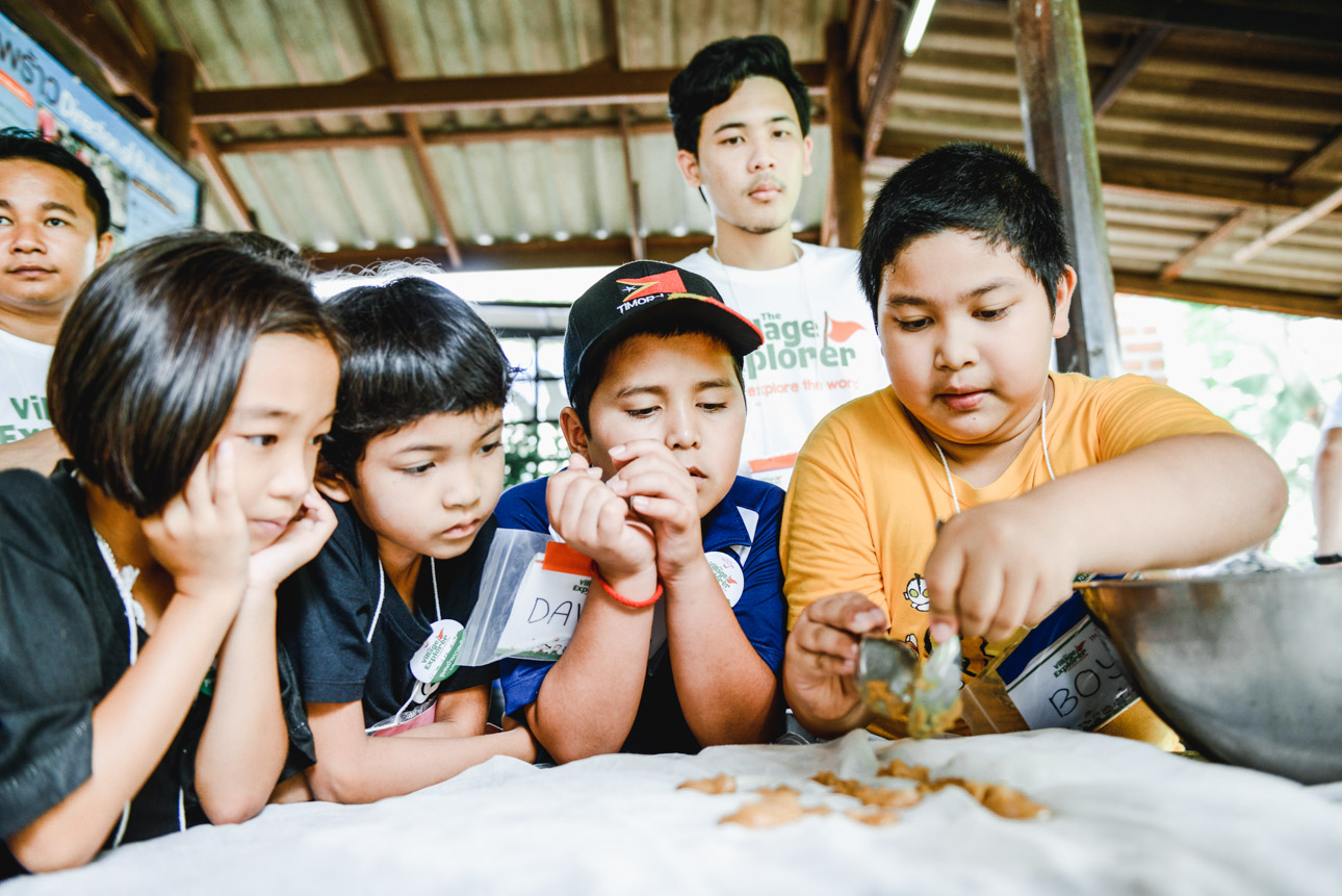 | แบ่งเป็น 3 กลุ่ม เข้าเรียนตามฐานกิจกรรม (โดยใช้จักรยาน) 1. ฐานการทำน้ำตาลมะพร้าว 2. ฐานการทำผลไม้เเช่อิ่ม (ผลไม้กลับชาติ) 3. ฐานการเผาถ่านผลไม้ (สกัดน้ำส้มควันไม้) |